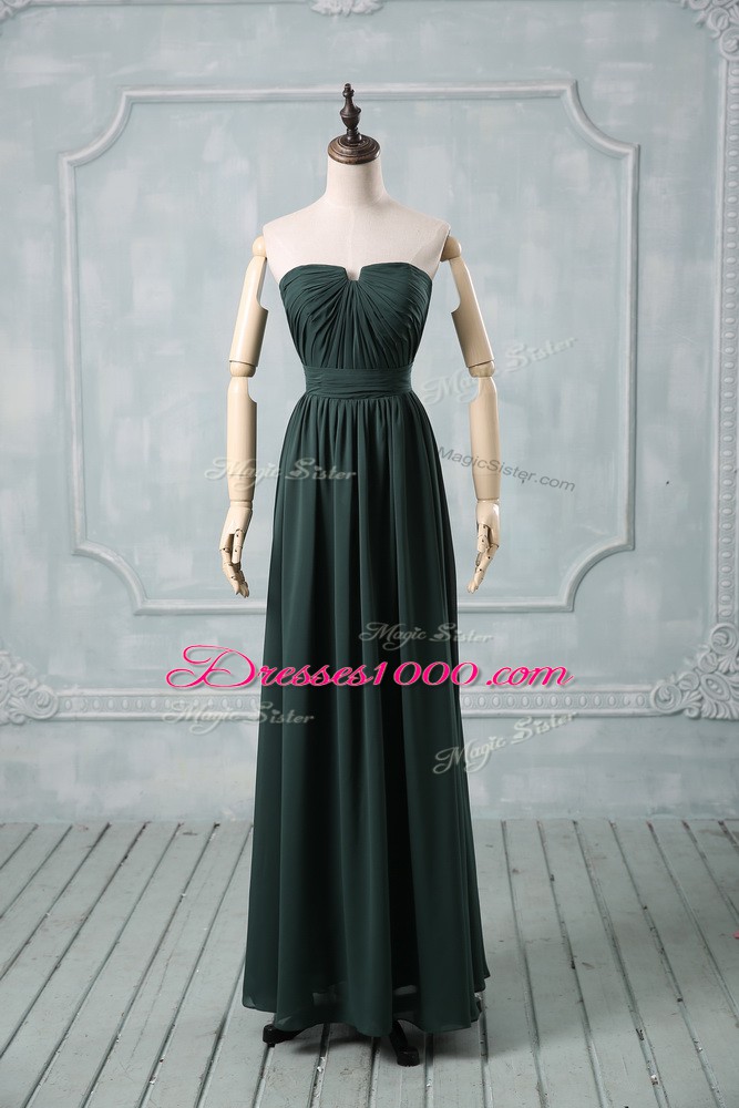 Noble Sleeveless Floor Length Ruching Zipper Evening Wear with Green