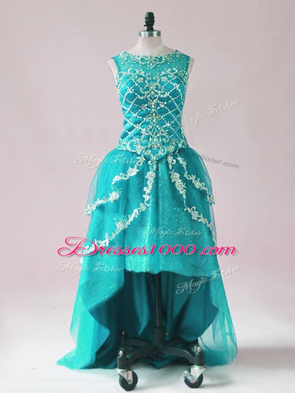 Sophisticated High Low Teal Prom Homecoming Dress Scoop Sleeveless Zipper
