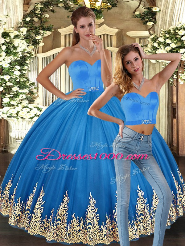 Sophisticated Sweetheart Sleeveless 15 Quinceanera Dress Floor Length Embroidery Baby Blue Tulle