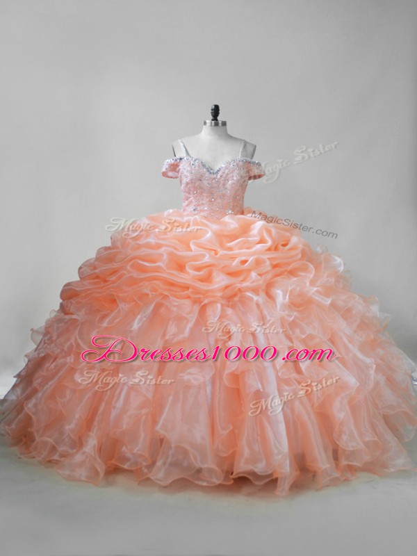 Orange Straps Neckline Beading and Ruffles and Pick Ups 15 Quinceanera Dress Sleeveless Lace Up