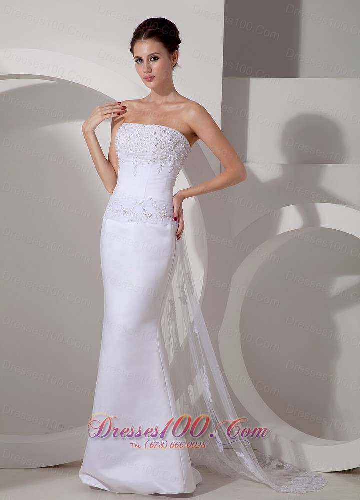 Mermaid Strapless Wedding Bridal Gown With Watteau Train