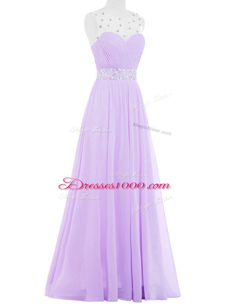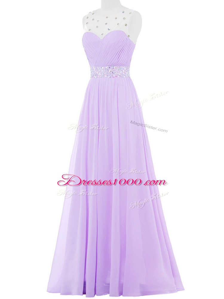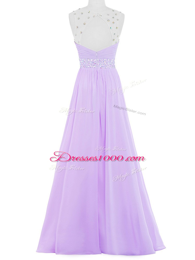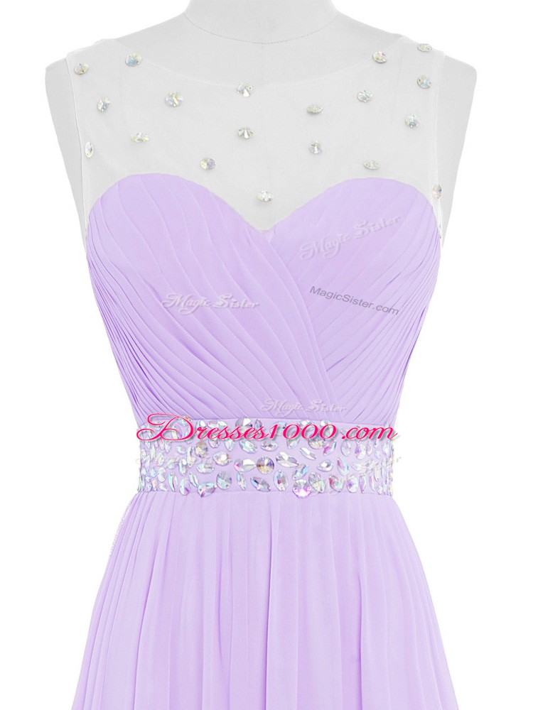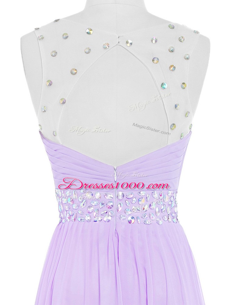 Traditional Scoop Sleeveless Backless Evening Gowns Lavender Chiffon