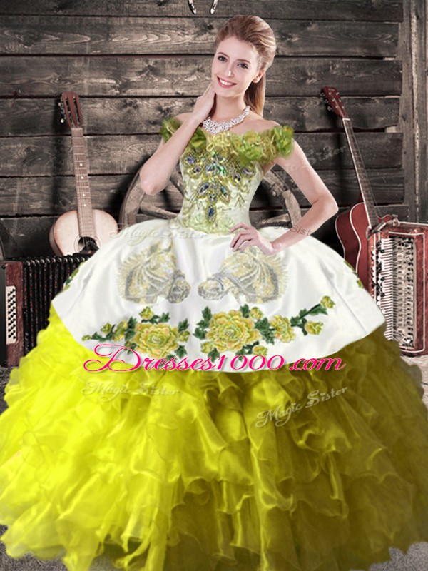 Custom Design Olive Green Ball Gowns Ruffles Quinceanera Gowns Lace Up Organza Sleeveless Floor Length