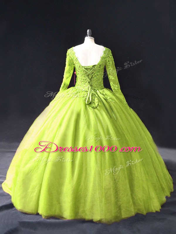 Noble Yellow Green Lace Up 15th Birthday Dress Lace and Appliques Long Sleeves Floor Length