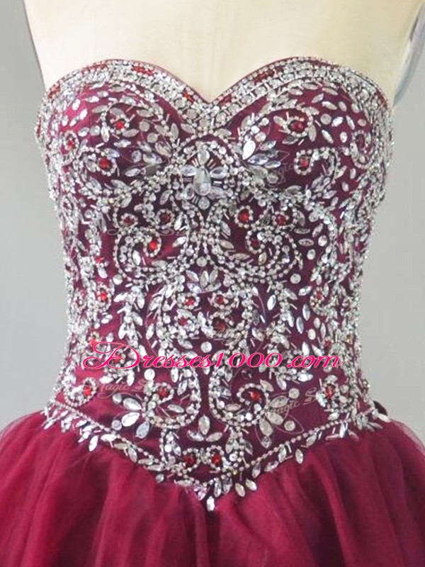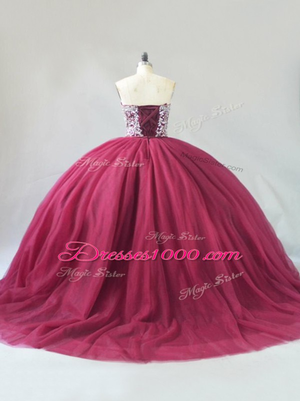 Sweetheart Sleeveless Tulle Quinceanera Gowns Beading Brush Train Lace Up