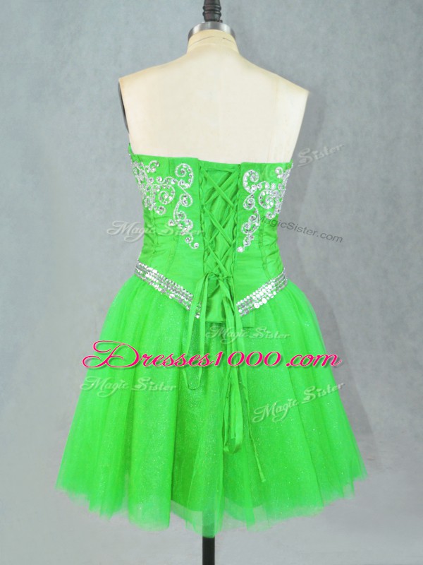 Fitting Green Sleeveless Beading Mini Length Juniors Party Dress