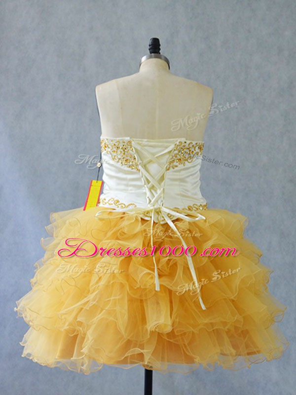 Sleeveless Mini Length Beading and Ruffles Lace Up Custom Made with Yellow