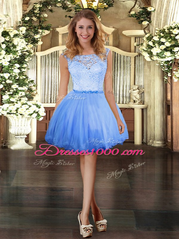 Traditional Mini Length Ball Gowns Sleeveless Blue Prom Dresses Zipper