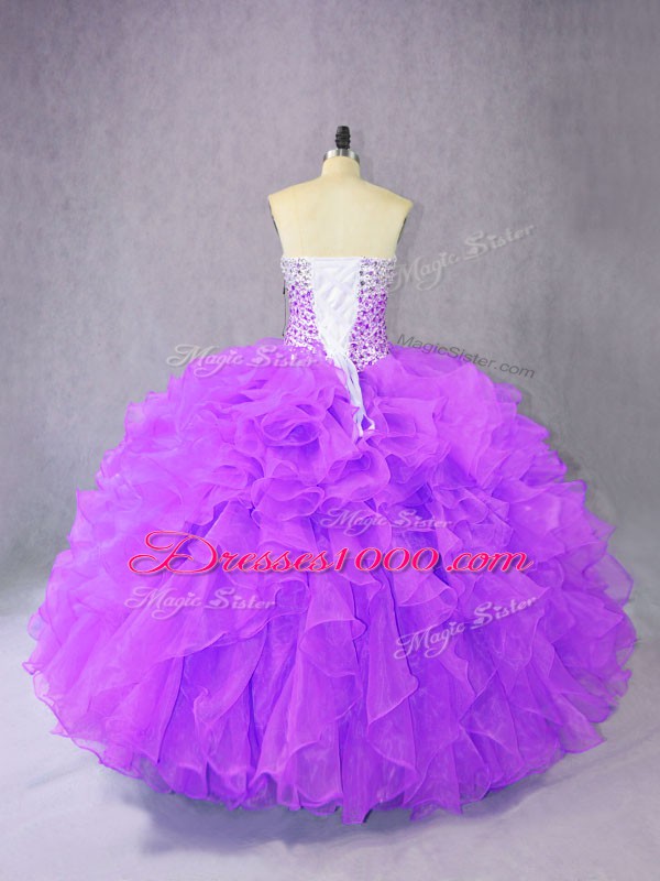Discount Purple Lace Up Sweetheart Beading and Ruffles Quinceanera Dresses Organza Sleeveless