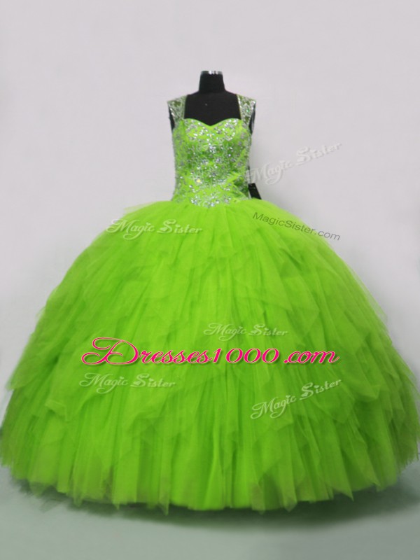 High Class Tulle Sleeveless Floor Length Ball Gown Prom Dress and Beading and Ruffles