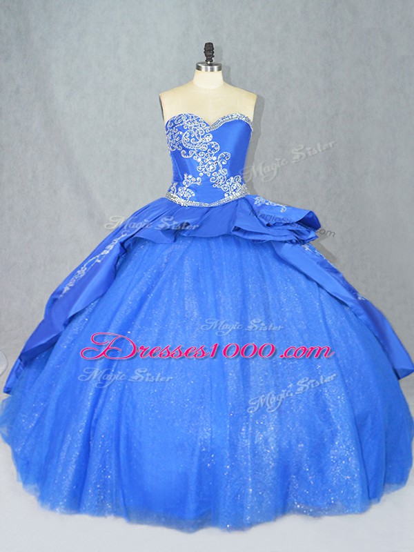 Customized Blue Sleeveless Beading and Embroidery Lace Up Sweet 16 Dress