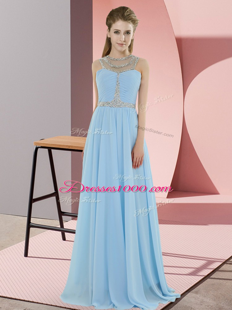 Glamorous Empire Evening Dress Light Blue Scoop Chiffon Sleeveless Floor Length Zipper