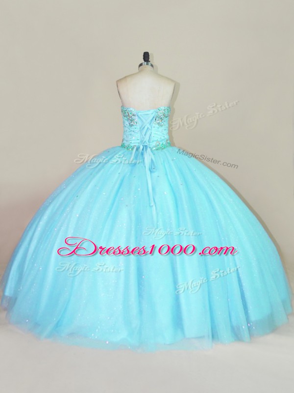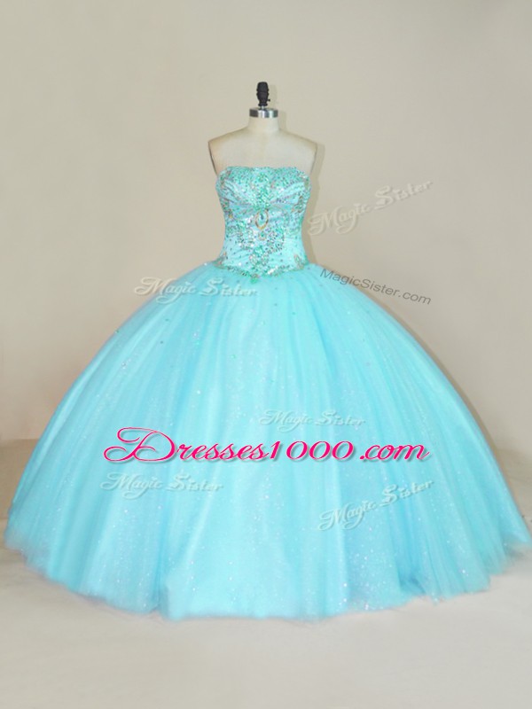 Aqua Blue Sleeveless Tulle Lace Up Sweet 16 Quinceanera Dress for Sweet 16 and Quinceanera