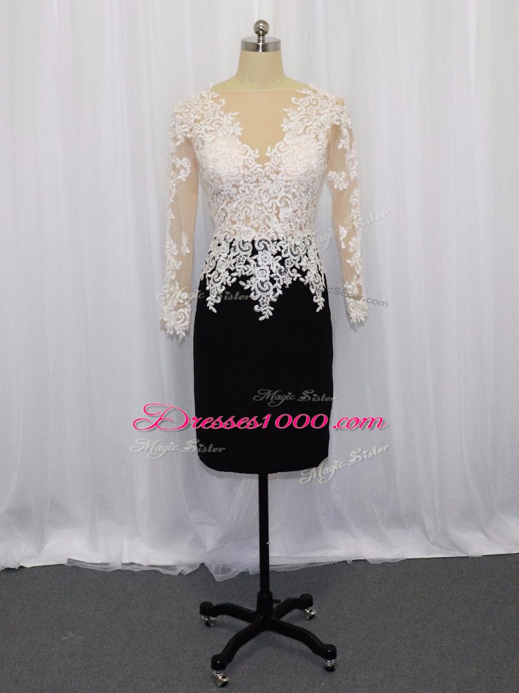 White And Black Satin Zipper Prom Party Dress Long Sleeves Mini Length Lace