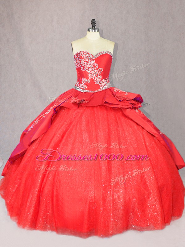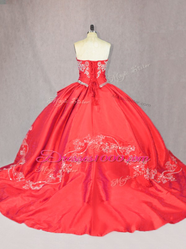 Tulle Sleeveless Floor Length 15th Birthday Dress Court Train and Embroidery