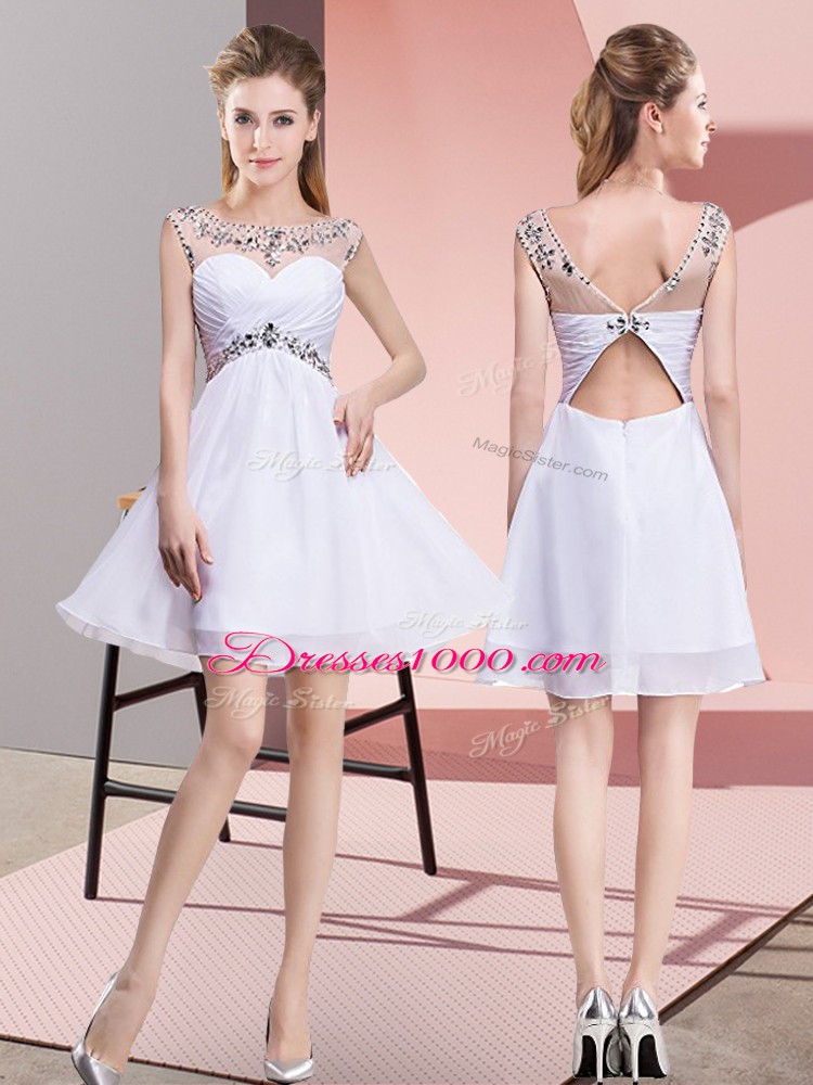 White Scoop Backless Beading Homecoming Dress Online Sleeveless