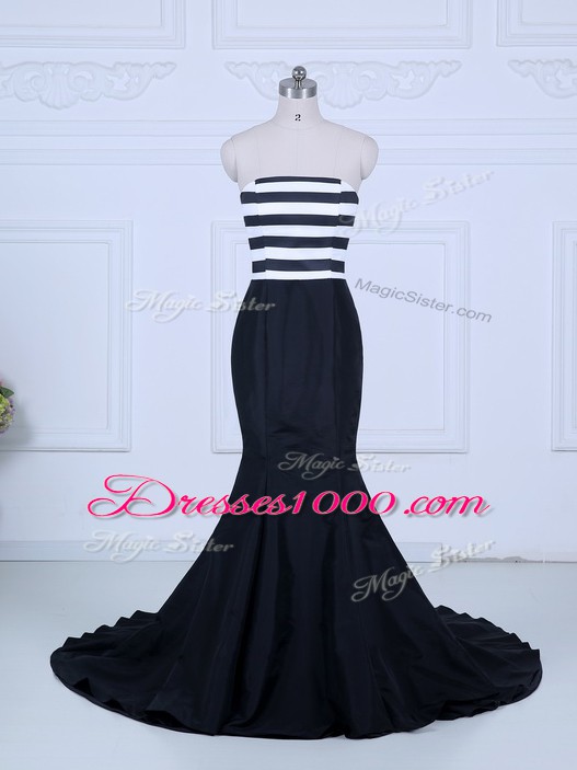 Clearance Brush Train Mermaid Juniors Evening Dress White And Black Strapless Satin Sleeveless Lace Up