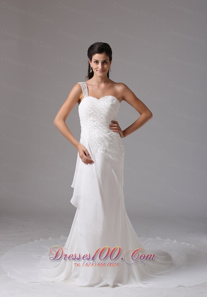 Appliques One Shoulder Chiffon Court Train Bridal Wedding Dress