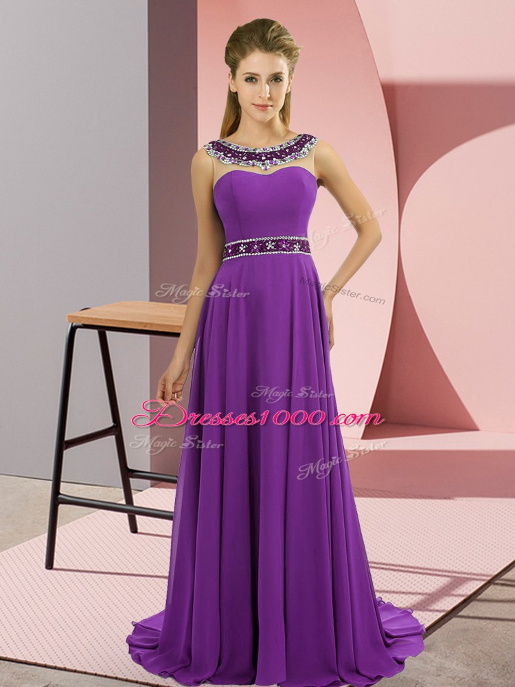 Attractive Purple Sleeveless Beading Zipper Evening Party Dresses