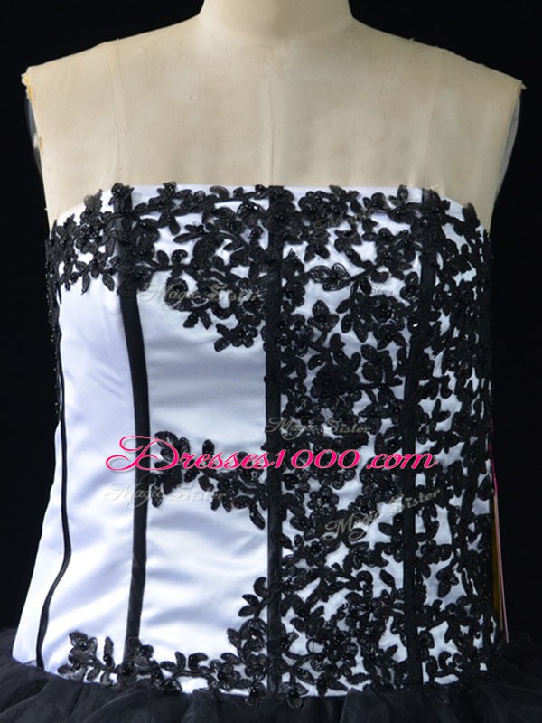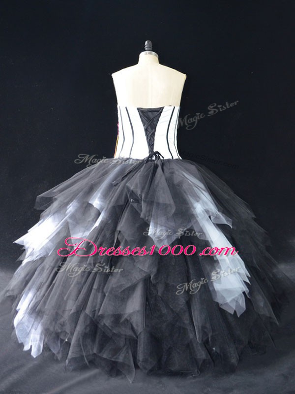 Sexy Lace and Ruffles Vestidos de Quinceanera White And Black Lace Up Sleeveless Floor Length