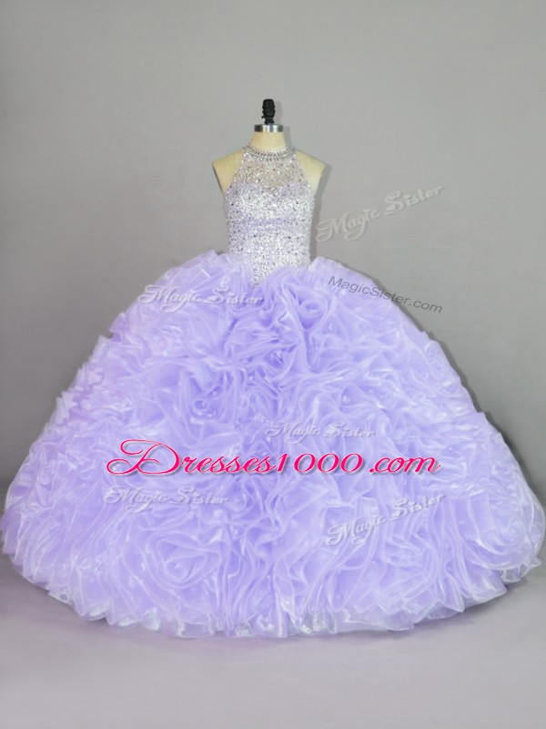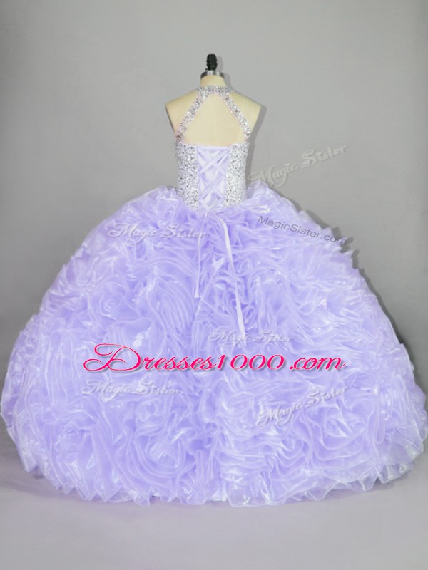 Sweet Halter Top Sleeveless Organza 15th Birthday Dress Beading and Ruffles Lace Up