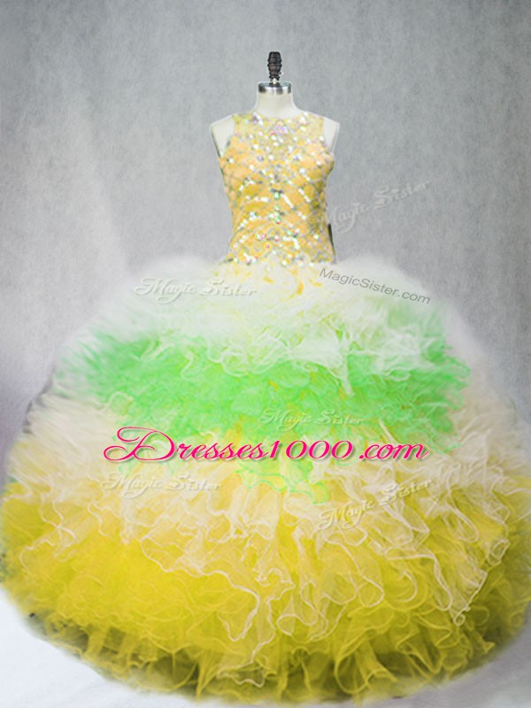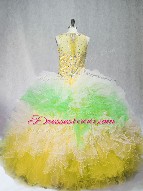 New Arrival Scoop Sleeveless Tulle Sweet 16 Dress Beading and Ruffles Zipper