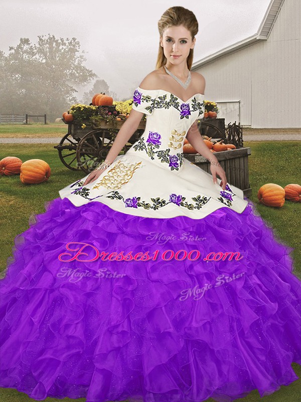 Classical Embroidery and Ruffles Quinceanera Dress Purple Lace Up Sleeveless Floor Length