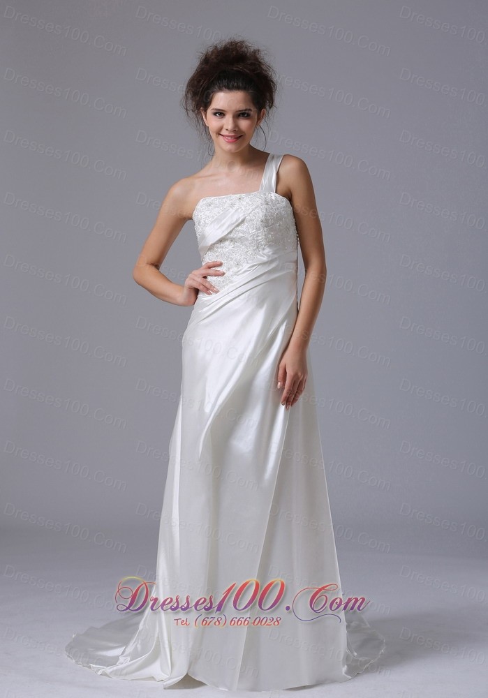 One Shoulder Beading Taffeta Bridal Wedding Gown With Court Train