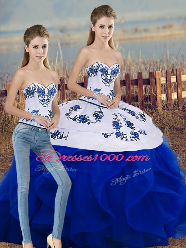 Pretty Tulle Sleeveless Floor Length Quinceanera Dress and Embroidery and Ruffles and Bowknot
