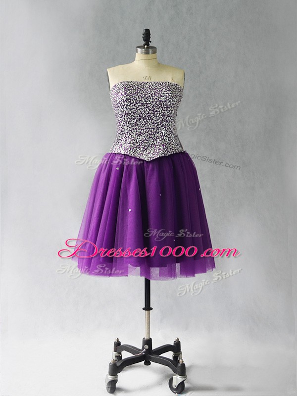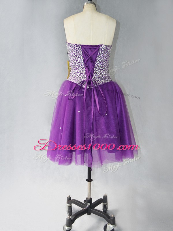 Pretty Purple A-line Tulle Strapless Sleeveless Beading Mini Length Lace Up