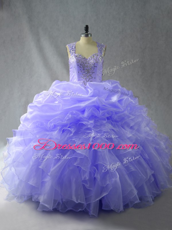 Fabulous Lavender Ball Gowns Organza Straps Sleeveless Beading and Ruffles Floor Length Zipper Sweet 16 Dresses