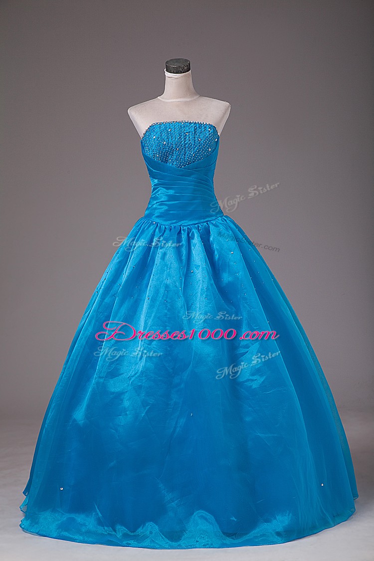 Blue Sleeveless Beading Floor Length Quinceanera Dresses