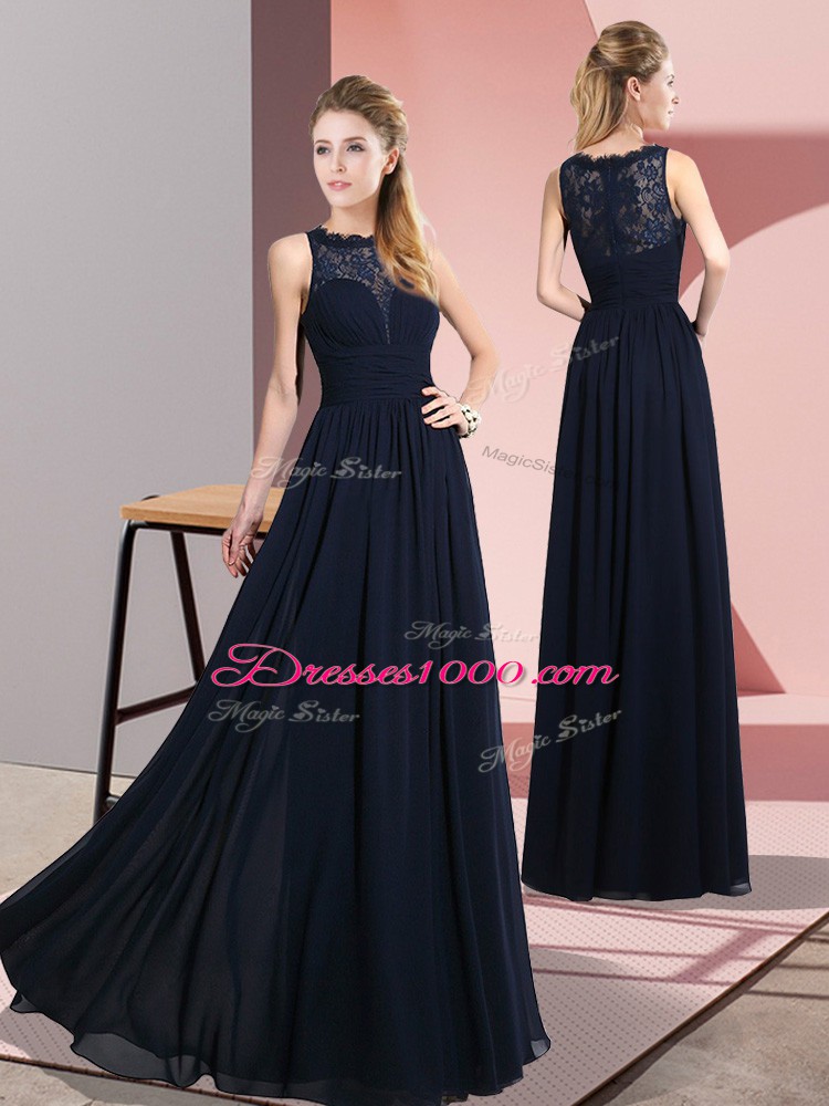 Empire Evening Gowns Navy Blue Scoop Chiffon Sleeveless Floor Length Zipper