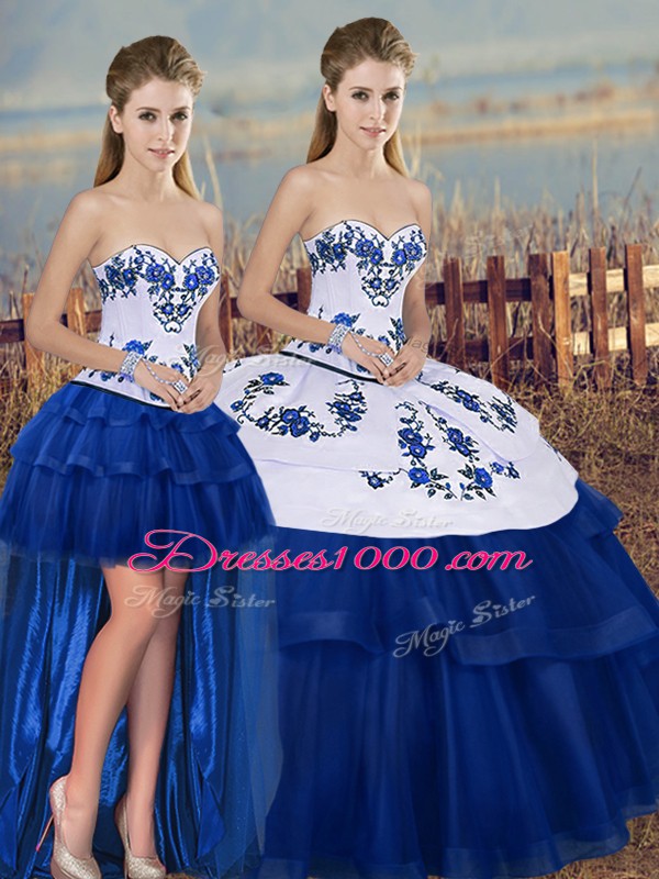 Floor Length Royal Blue Quinceanera Gowns Tulle Sleeveless Embroidery and Bowknot