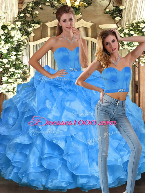 Wonderful Baby Blue Ball Gowns Ruffles Quinceanera Gowns Lace Up Organza Sleeveless Floor Length