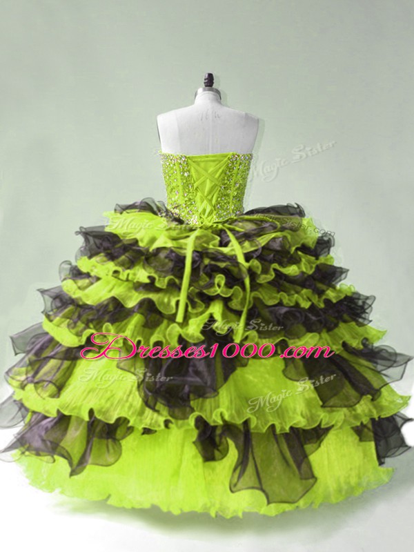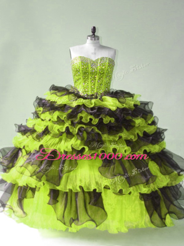 Yellow Green Lace Up Sweetheart Beading Vestidos de Quinceanera Organza Sleeveless