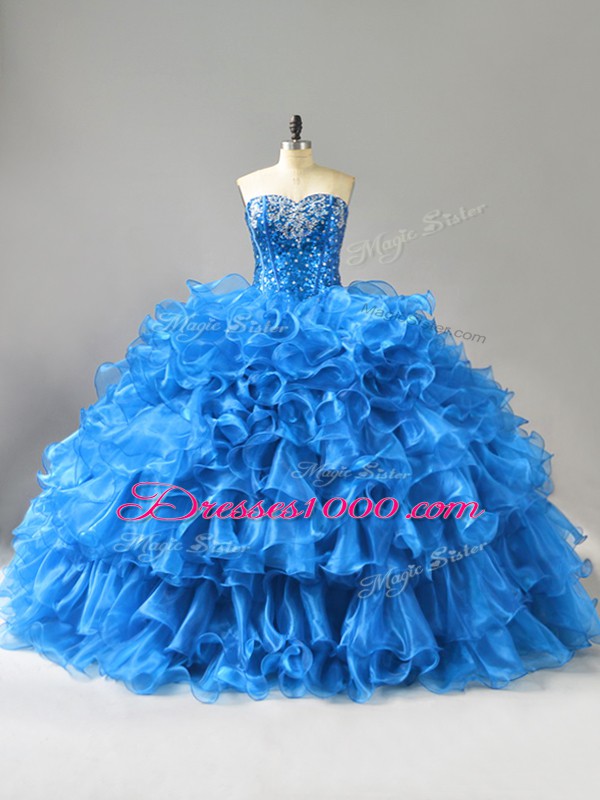 Beading and Ruffles and Sequins Sweet 16 Dresses Blue Lace Up Sleeveless Floor Length