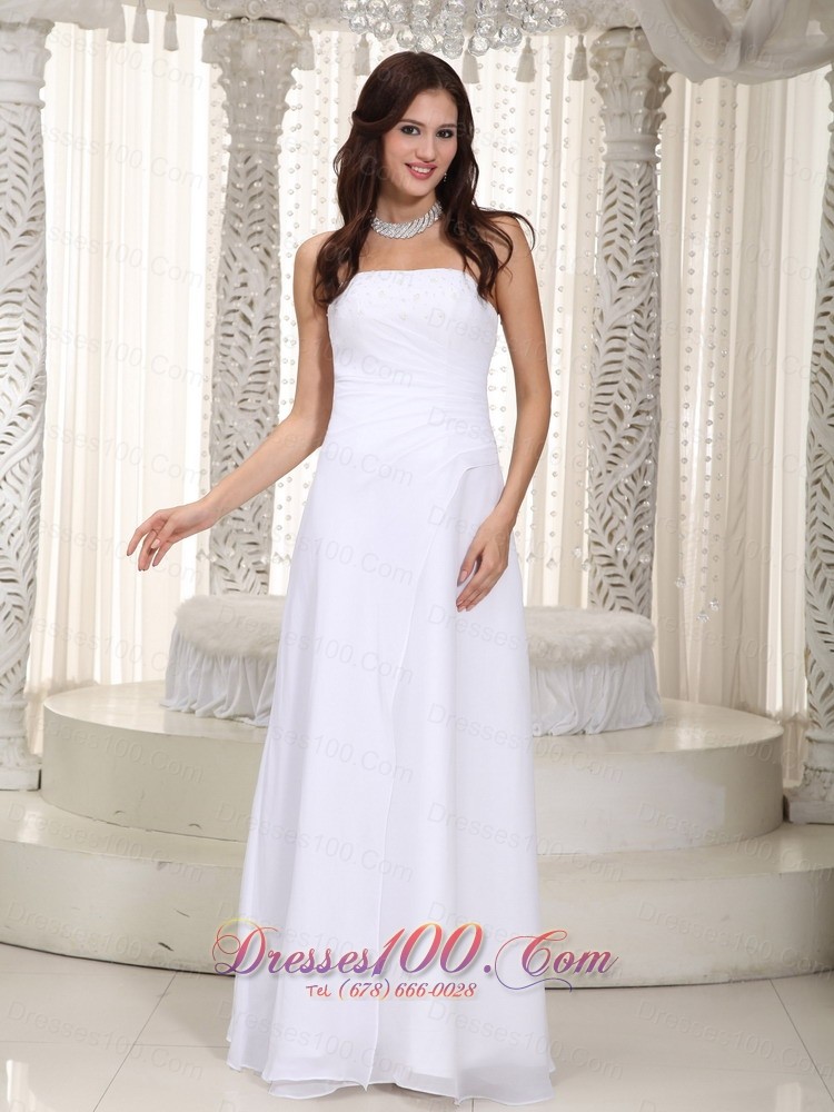 Strapless Empire Chiffon Floor-length Wedding Gown With Beading