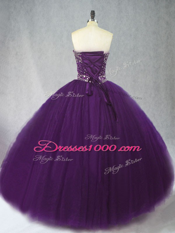 Simple Sweetheart Sleeveless Lace Up Sweet 16 Quinceanera Dress Purple Tulle