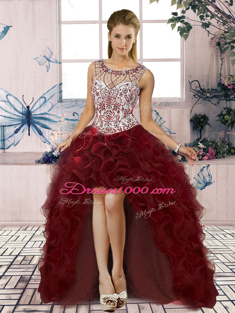 Sleeveless Lace Up High Low Beading and Ruffles Pageant Dress for Girls