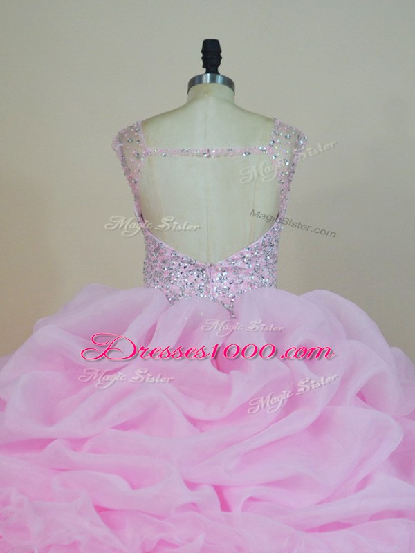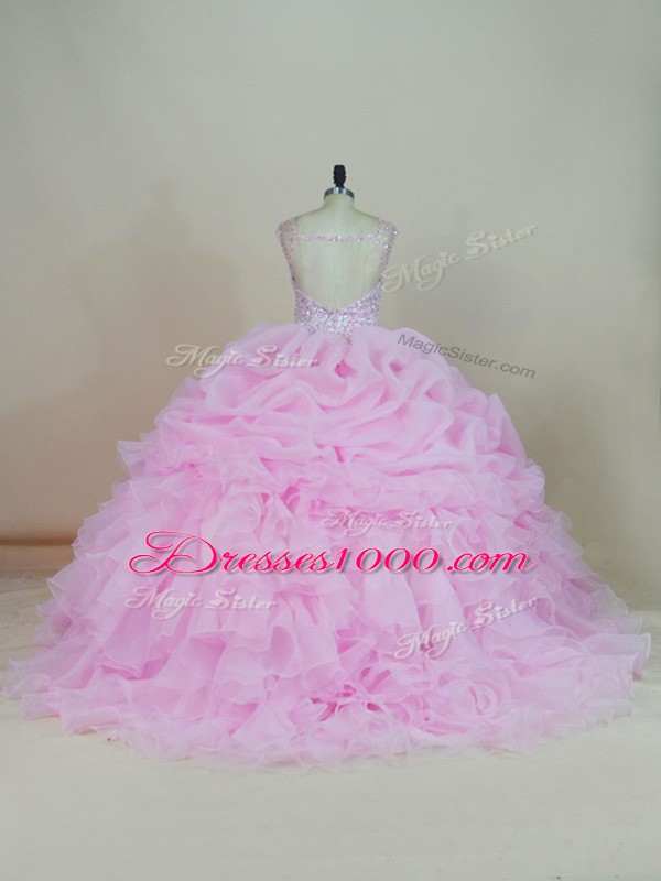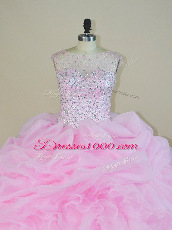 Vintage Pink Scoop Neckline Beading and Ruffles Sweet 16 Dress Sleeveless Backless