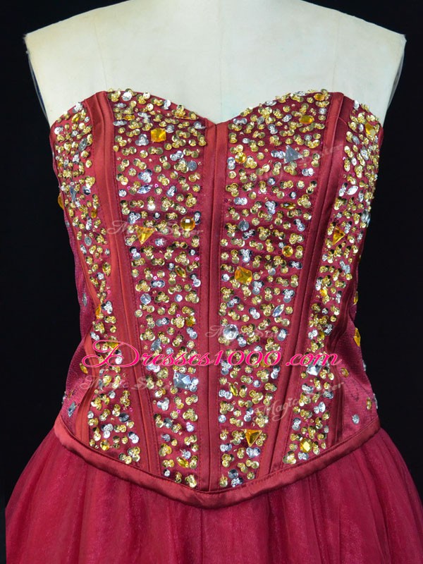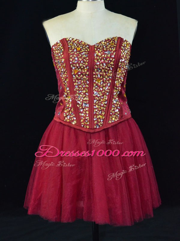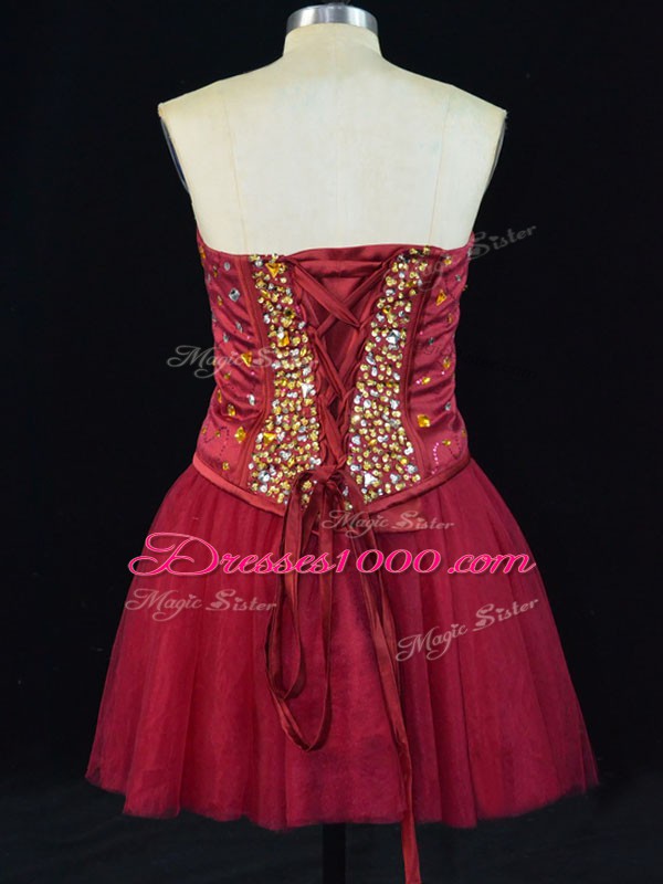 Pretty A-line Homecoming Gowns Wine Red Sweetheart Tulle Sleeveless Mini Length Lace Up