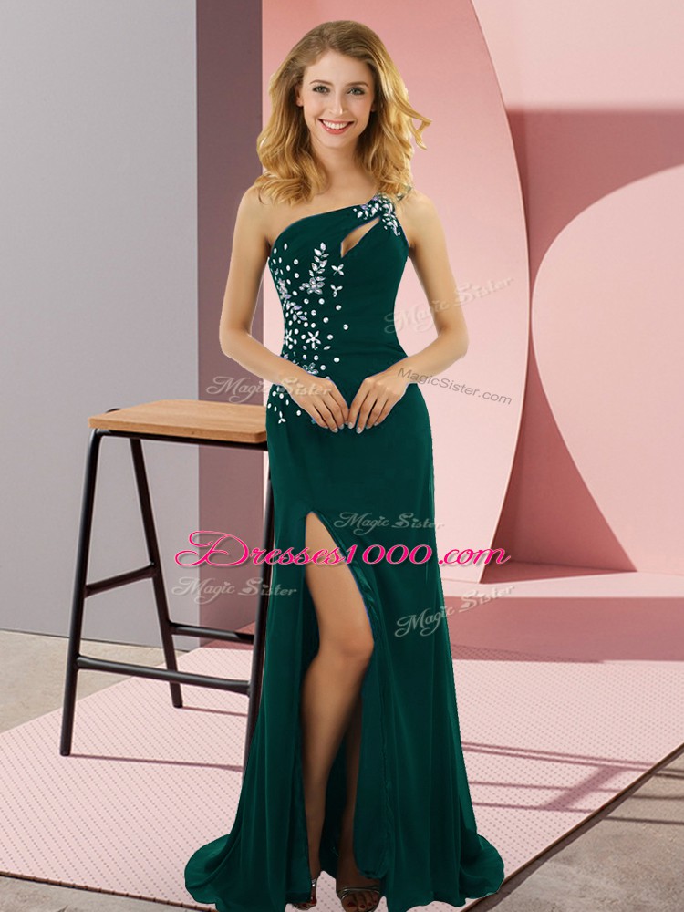 Trendy Sleeveless Sweep Train Lace Up Beading Going Out Dresses