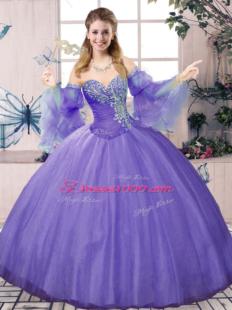 Tulle Sweetheart Sleeveless Lace Up Beading Quinceanera Gowns in Lavender