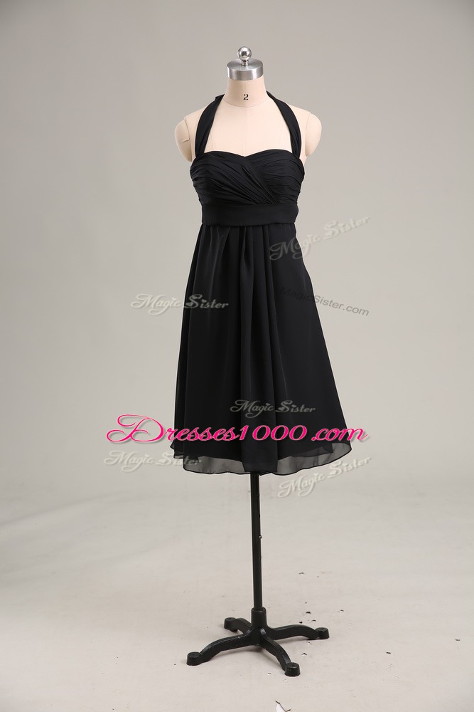 Dramatic Sleeveless Chiffon Mini Length Zipper Homecoming Dress in Black with Ruching
