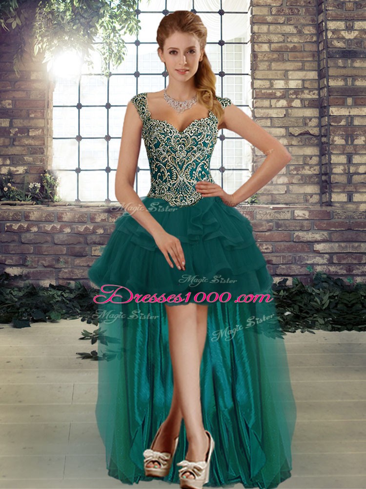 Cheap Sleeveless Lace Up High Low Beading and Ruffles Glitz Pageant Dress