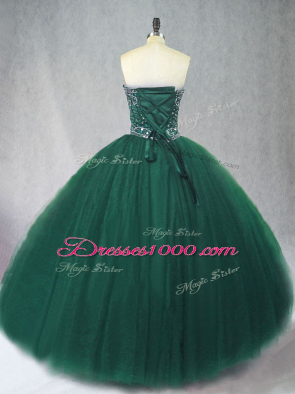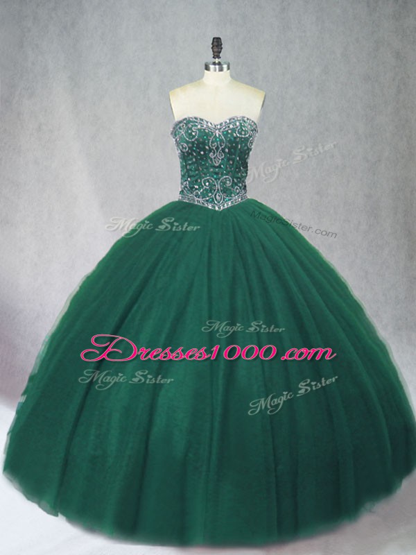 Floor Length Dark Green Vestidos de Quinceanera Tulle Sleeveless Beading