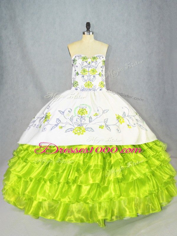 Floor Length Ball Gown Prom Dress Organza Sleeveless Embroidery and Ruffled Layers