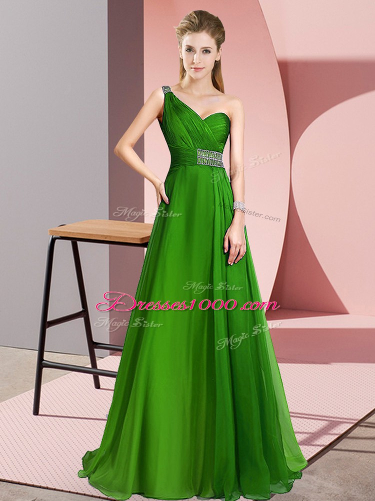 New Style One Shoulder Sleeveless Chiffon Going Out Dresses Beading Brush Train Criss Cross