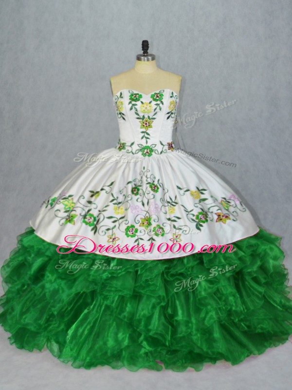 Chic Floor Length Lace Up Quinceanera Dresses Green for Sweet 16 and Quinceanera with Embroidery and Ruffles